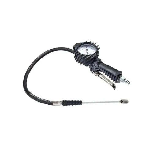 | Karakteristike | Robusni pištolj za naduvavanje guma za profesionalnu upotrebu u radionicama za kamione. Homologacija CEE. Kućište i manometar prekriven gumom. Dupli ventilski priključak za kamione i autobuse. Dužina creva: 0.5 m + 0.3 m Masa : 0.8 kg Dimenzije: Prečnik manometra: 80 mm Dimenzije pištolja: 245 x 95 x 125 cm Prikaz pritiska: 0 - 12 bara Maksimalni radni pritisak: 12 bara |