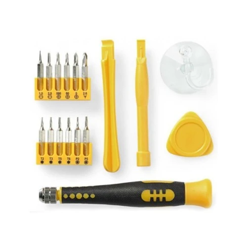 | Ostalo | Set odvijača i alata za popravak računara, pametnih telefona i elektronskih uređaja nudi vam 17 osnovnih alata za popravljanje i sastavljanje uređaja. Sadrzaj: Pentalobe P2 / P5 Philips P000 / P00 / P0 Slotted SL1 / SL2 Torx T2 / T3 / T5 |