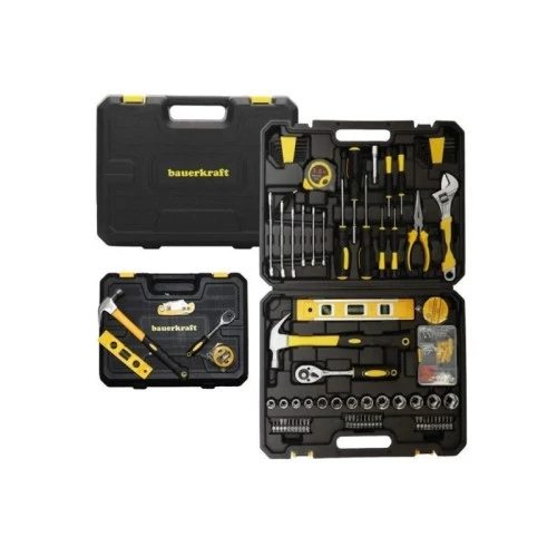 | Karakteristike | Ovaj opsežan set sadrži 140 elemenata namenjenih za kućne i radionicke poslove. Alati su izrađeni od izdržljivog karbonskog čelika i hrom-vanadijuma, što im pruža otpornost na intenzivnu upotrebu. Gumirani rukohvati garantuju čvrst i siguran hvat čak i u teškim uslovima. Čvrst kofer sa posebno predviđenim mestima za svaki alat omogućava lako organizovanje i siguran transport. Set uključuje, između ostalog, imbus ključeve, viljuškaste ključeve, račvast ključ, podesivi ključ, odvijače, bitove, klješta, čekić, libelu, metar i set tiplova. Idealno je rešenje za sklapanje nameštaja, kućne popravke ili rad u garaži. Dimenzije pakovanja: 9 × 33 × 41 cm Težina: 4,25 kg |