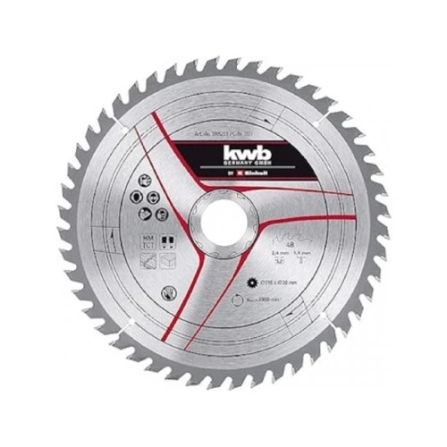 | Karakteristike | Einhell by KWB TCT rezni list 216x30x2.8mm T48 49588251 pogodan za tvrdo i meko drvo, šperploču, drvene kompozite i PVC. TCT rezni list 216x30x2.8mm T48 Einhell by KWB 49588251 koristi se kao pribor za stacionarne testere. |