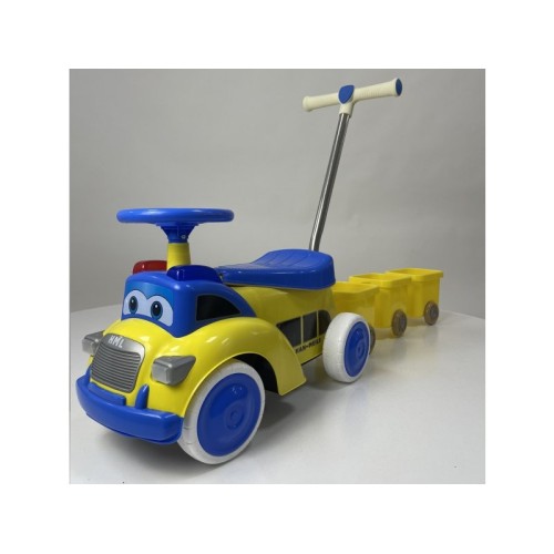 | Opis | Funkcija: Guralica sa odvojivom ručkom i 3 odvojive prikolice Atraktivan dizajn vozila sa licem – zabavan izgled sa animiranim očima , svetlima i melodijama Plastični točkovi sa belim obrubima – stabilna vožnja po ravnim površinama 3 odvojive prikolice – idealno za prevoz igračaka, loptica ili sitnica Udobno plastično sedište sa blago teksturiranom površinom Volan koji se okreće – dodatna zabava i osećaj upravljanja Ručka za guranje – metalna sa plastičnim drškama, pogodna za roditelje, odvojiva Jednostavno sklapanje i održavanje Maksimalna nosivost: do 20 kg Dimenzije sa ručicom: 120 x 30 x 70 cm (sa rucicom) |