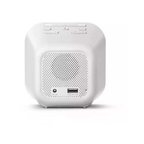 | Karakteristike | Radio sa budilnikom Digitalno FM pretraživanje USB punjač za telefon Ekran sa izgledom ogledala i velikim ciframa sata Izlazna snaga (RMS): 700 mW Zvučni sistem: Mono Sat: digitalni LED ekran format vremena: 12/24 h Alarm: broj alarma: 2 izvor alarma: zujalica/FM radio odlaganje (ponavljanje alarma): da, 9 min resetovanje alarma na 24 sata sat za gašenje: 15/30/60/90/120 min Tjuner: opseg tjunera: FM FM antena frekventni opseg: 87,5 - 108 MHz broj memorisanih stanica: 20 Tip napajanja: ulaz AC: 100–240 V, 50/60 Hz rezervno: 2x AAA baterija (nisu priložene) omogućava memorisanje vremena u slučaju nestanka struje Visina: 110 mm Širina: 110 mm Dubina: 75 mm Neto/bruto težina: 220/440 g |