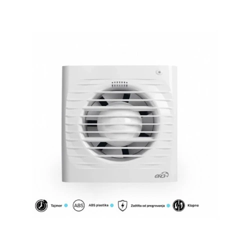| Karakteristike | Nazivni napon: 220 V AC Nazivna snaga: 14 W Boja: Mat bela Materijal: ABS Spoljni prečnik: 100 mm Protok vazduha (M3/H): 97 Pritisak: 28 Pa Buka: 35 dB Dimenzije: Širina - 150mm, Visina - 150mm, Dubina 82mm Dimenzije otvora za ugradnju: Ø 100 mm Težina: 0,6 kg Temperatura okruženja: -5 °C do +40 °C IP kod: IP24 Potrošnja elek. energije: 14kW/1000h |