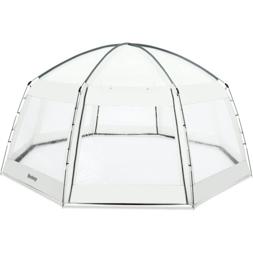 | Karakteristike | Dimenzije: 600 x 295 cm Kompatibilnost: Bestway bazeni prečnika do Ø 488 cm Sadržaj pakovanja: Bestway kupola (šator) Torba za nošenje – za lako skladištenje i transport 16 klinova – za sigurno pričvršćivanje |