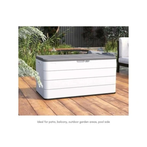 Baštenska kutija za odlaganje je praktično rešenje za organizaciju prostora u dvorištu, na terasi, balkonu ili pored bazena. Ova vodootporna kutija za baštu napravljena je od izdržljivog HDPE materijala, koji je otporan na kišu, sunce, vlagu i druge spoljne uslove.