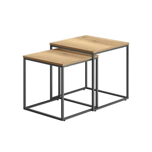 Bolzz Kvadratni sto za kafu 2 kom - hrast / crne noge