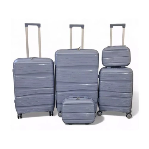 | Karakteristike | Set uključuje: 5 kofera (8", 12", 20", 24", 28") Materijal: PP (Polipropilen) – vodootporan i otporan na udarce Boja: Neutralna i elegantna Točkovi: 360° okretni za lako kretanje Ručka: Teleskopska sa više nivoa Zaključavanje: Sigurnosna brava Unutrašnjost: Trake za učvršćivanje prtljaga |