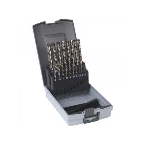 | Karakteristike | Tehnički podaci: Prečnik mm: 1,0; 1,5; 2,0; 2,5; 3,0; 3,5; 4,0; 4,5; 5,0; 5,5; 6,0; 6,5; 7,0; 7,5; 8,0; 8,5; 9,0; 9,5; 10,0 Radna dužina mm: 12; 18; 24; 30; 33; 39; 43; 47; 52; 57; 57; 63; 69; 69; 75; 75; 81; 81; 87 Dimenzija(e) garnitura mm: 172,0 x 115,0 x 42 Pogodno za: Metali koji sadrže gvožđe | nelegirani/niskolegirani čelik Metali koji sadrže gvožđe | sivi liv Metali koji sadrže gvožđe | čelik/metal koji sadrži gvožđe Metal koji ne sadrži gvožđe | bakar Metal koji ne sadrži gvožđe | cink Metal koji ne sadrži gvožđe | legure Metal koji ne sadrži gvožđe | kalaj Metal koji ne sadrži gvožđe | aluminijum |