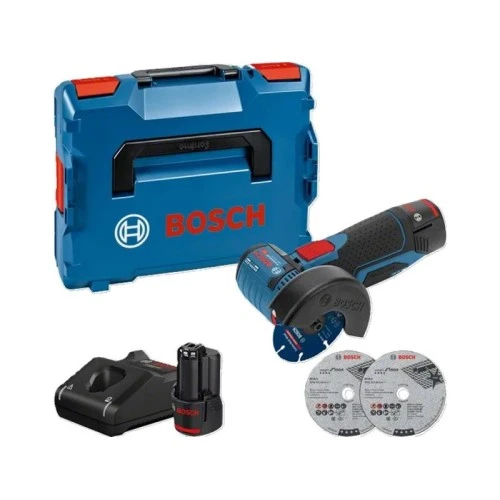 | Ostale karakteristike | Kapacitet akumulatora: 3 Ah Napon akumulatora: 12 V Prečnik ploče: 76 mm Navoj brusnog vretena: M5 Provrt, Ø: 10 mm Masa bez akumulatora: 0.5 kg Obim isporuke: Bosch GWS 12V-76 1 x rezna ploča od tvrdog metala, Carbide Multi Wheel, 76 x 10 mm Štitnik L-BOXX 102 2 x akumulator GBA 12V 3.0Ah Brzi punjač GAL 12V-40 Professional L-BOXX uložak 1/2 2 x rezne ploče, Expert for Inox, 76 x 10 x 1 mm 1/2 L-BOXX uložak za punjač i akumulator |