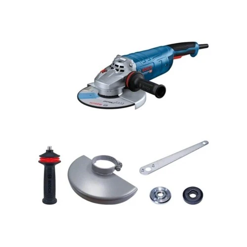 | Ostale karakteristike | Nominalna ulazna snaga: 2700 W Napon: 230 V Prečnik ploče: 230 mm Navoj brusnog vretena: M14 Glavna drška: Rattail Lončasta četka, Ø: 100 mm Lončasti brus, prečnik: 110 mm Provrt, Ø: 22.23 mm Težina: 6 kg Prekidač koji se može blokirati Obim isporuke: Bosch GWS 27-180 J Zatezna navrtka Dodatna drška Ključ za dve rupe Zaštitni poklopac Prihvatna prirubnica |