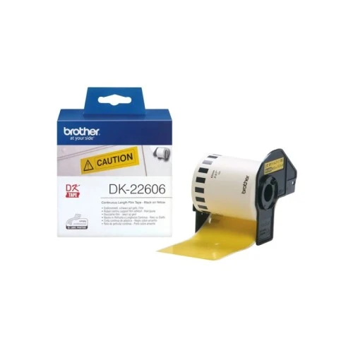 | Specifikacija | Visokokvalitetna kontinuirana film traka, žuta sa crnom štampom Širina 62 mm, dužina 15,24 m Idealna za izradu nalepnica koje se moraju istaknuti Kompatibilna za sve QL modele Brother štampača nalepnica |