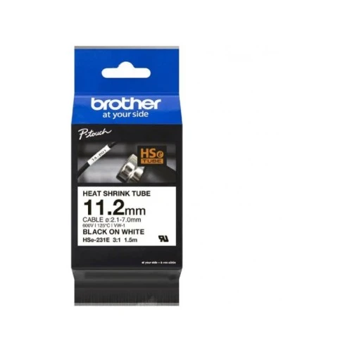 | Specifikacija | Širina 11,7 mm, dužina 1,5 m Skupi se kad se zagreje, što omogućava jednostavnu identifikaciju kablova Visokokvalitetna originalna Brother kaseta Originalna Brother HSe-231 termoskupljajuća cev 11,7 mm dizajnirana je za postojano označavanje i identifikaciju kablova i žica. Uz odnos smanjenja od 2:1, HSe-231, crna na beloj, preporučuje se za upotrebu s kablovima prečnika od 3,6 mm do 7,0 mm. |