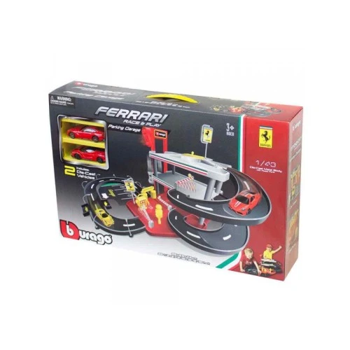 | Karakteristike | Burago Ferrari Race&Play parking garaža. Pakovanje sadrži dva autića i srazmeri 1/43. Burago je čuvena italijanska kompanija nudi širok spektar autentičnih maketa automobila, različitih razmera i marki, koje su naročito popularne medju kolekcionarima. |