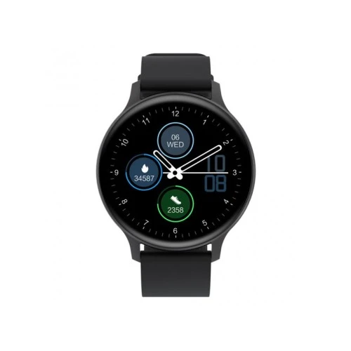 | Ostale karakteristike: | IP68 waterproof Round LCD screen Customizable notifications SMS alerts Water time drink reminder Sedentary reminder Heart rate monitor and accelerometer Blood pressure Oxygen saturation level Detailed activity statistics Women's calendar Sleep monitoring Alarm clock Interchangeable dials 22 popular sport modes Remote camera & music player control Games inside Weather Low power consumption Compatible with Android 5.1+, iOS 12.0+ |