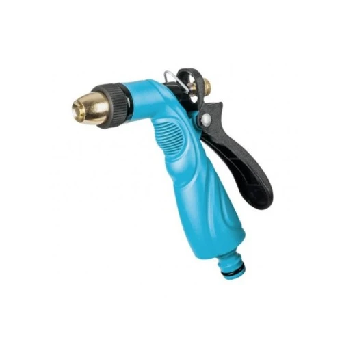 | Karakteristike | Ručna prskalica 2 funkcije Basic. Od metala i plastike. Nepostepena regulacija vodenog toka i njegove jačine od jakog mlaza do magle. Zgodna brava okidača. |