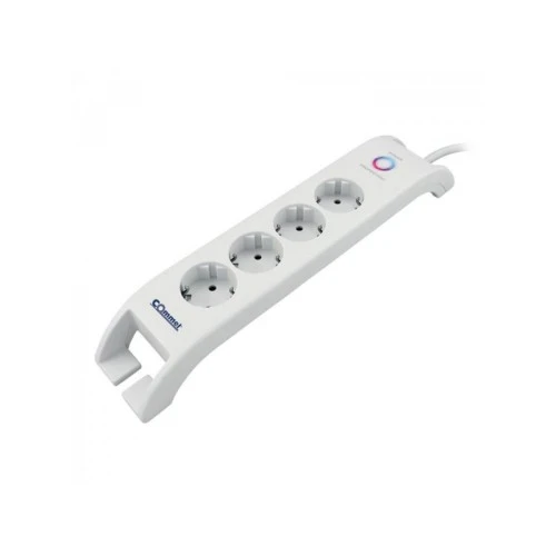 | Karakteristike | Commel beli produzni kabl duzine 2 m, sa prenaponskom zastitom, 4 uticna mesta i 2 USB-A prikljucka. Ima mogucnost pricvrscivanja srafovima na ravnu povrsinu, a "Bridge" izgled uticnice omogucava urednu organizaciju prikljucenih kablova. Poseduje LED indikator i ON/OFF prekidac. Maksimalno opterecenje je 16 A / 3680 W, napon 250 V~ 50Hz. Tip kabla je H05VV-F, presek 3G1,5. |
