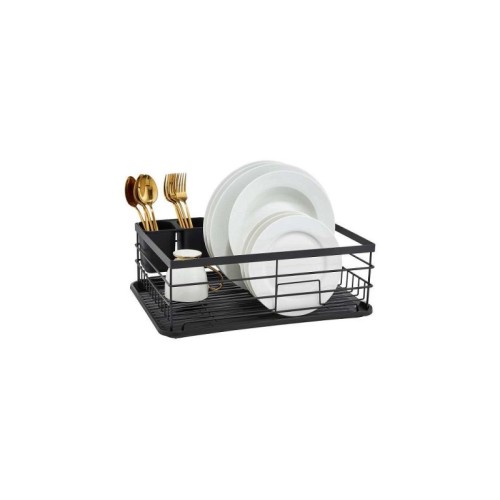 | Karakteristike | Dimenzije: Dužina: 43 cm, Širina 32 cm, Visina 14 cm. Boja: crna. Materijal: metal/plastika. Težina: 0,685 kg. Moderan dizajn. Samo rucno pranje. Odojivi ocedjivac za pribor za jelo. Izdržljiva konstrukcija. |