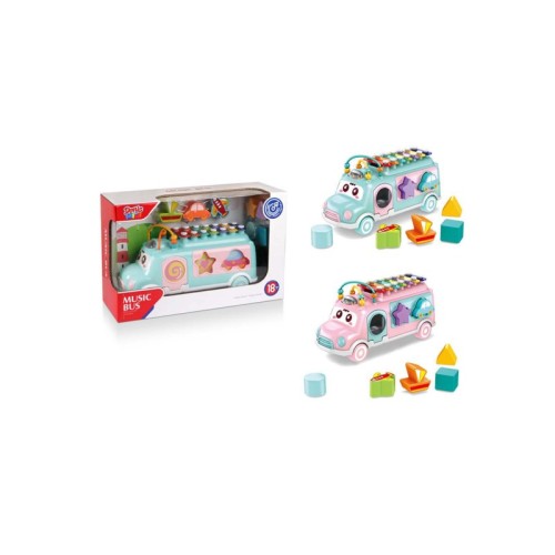 | Karakteristike | Savršena igračka za male istraživače jer simpatični šareni autobus pruža zabavnu igru za mališana, stimuliše njegovu radoznalost i senzomotoni razvoj kao što je koordinacija oko-ruka hvatanjem i ubacivanjem oblika i vizualna percepcija prepoznavanjem oblika i boja. To će podstaći vašeg malog puzača da gura i vašeg malog hodača da vuče, zajedno će se upustiti u nove avanture. Razvojna muzička igračka za bebe. Elektronska igračka – autobus, 7 oblika. Ksilofon, vodilica, prorezi za ubacivanje oblika, zvečka. Stimuliše senzomotoriku, logičko rasuđivanje. Materijal izrade: čvrsta ABS plastika. Starost: 18meseci+. Asortiman u dve boje na izbor (roza, plava). Svaki model se prodaje zasebno. |