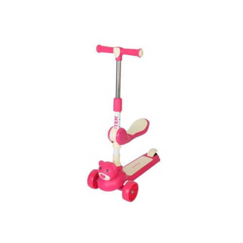 | Karakteristike | Romobil 2 u 1: uklonjivo sedište za jednostavan prelaz iz sedećeg u stojeći položaj.• Ručka podesiva u 4 visine – prilagođava se rastu deteta.• 3 čvrsta točka za odličnu stabilnost.• Glatka i tiha vožnja sa protukliznom platformom i visoko prigušujućim točkovima.• Sladak i atraktivan dizajn medvedića. Naručite odmah i poklonite svom detetu zabavan i mekan romobil s medvedićem! Materijal: plastika i metalna legura. Za uzrast: 2+. |