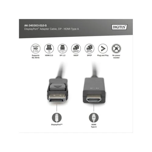 DIGITUS Kabl Display port 1.2 na HDMI2.0 4K 1m crni