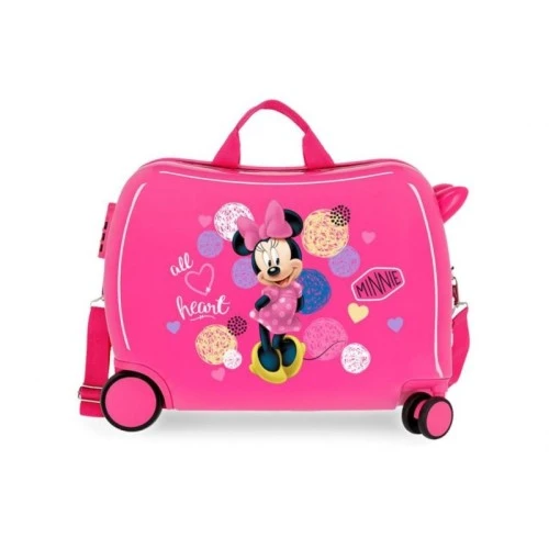 | Karakteristike | Uživajte u putovanjima uz kolekciju kofera Minnie Love. Priprema i organizovanje svega za sledeću avanturu u nekom od kofera i toaletnih torbi biće veoma laka je imaju različite pregrade i džepove. Putovanje sa Minnie je tako zabavno! Kofer za decu sa 4 točkića, od kojih su prednja dva dupla točkića koji omogućavaju dvosmerno. Maksimalna preporučena težina koju nosi kofer je 30 kg – savršen je za dete između 3 i 7 godina. Unutrašnjost kofera je uređena sa elastičnim trakama na obe strane, kako bi prtljag bio maksimalno organizovan. Na bočnoj strani se nalazi bravica sa kombinacijom za zaključavanje za maksimalnu sigurnost prtljaga. Više načina za upotrebu: povlačenjem poput kolica, na ramenu sa podesivim naramenicom ili sedeći na njemu. Uživajte u vožnji! |