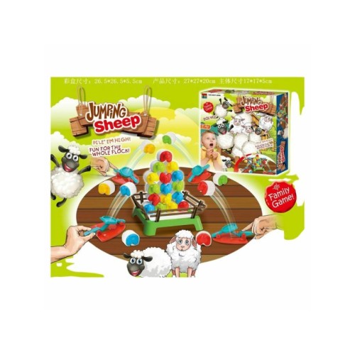 Karakteristike | U setu se dobijaju 16 figurica ovčica, 4 odskočne daske i 1 obor. Svaki igrač bira jednu boju ovce i zadatak je da ih ,,katapultira" u ograđen prostor. Igra je namenjena za 2 do 4 igrača. Dimenzije pakovanja: 26.5 x 6 x 27 cm |