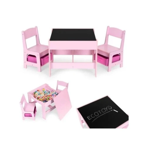 ECO TOYS Dečiji set sto i 2 stolice sa tablom za pisanje Pink