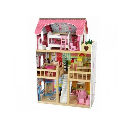 | Karakteristike | Velika drvena kućica za igru sa lutkama Kuća ima 3 sprata sa 5 različitih soba (kupatilo, kuhinja, trpezarija, dnevni boravak, spavaća soba) Komplet obuhvata 17 različitih dodataka koji nude nameštaj (krevet na sprat, tuš, sofa, sto sa stolicama itd.) Postoje 2 lutke (10cm) Kuća Sklopljene dimenzije: 59 cm x 33 cm x 90 cm |