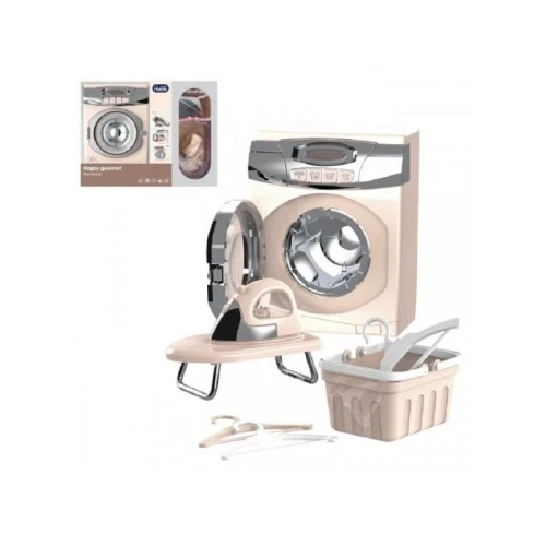| Karakteristike | Set za pranje veša. Sastoji se od vešmašine koja ima pokretna vrata, funkcijski taster, rotirajući bubanj unutar mašine. Set uključuje još korpu za veš, vešalice za odeću, peglu i dasku za peglanje. Dimenzije: 13.5 x 17.5 cm. |