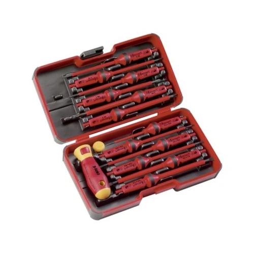 | Karakteristike | Kompozicija seta: SL: 2,5 / 3,0 / 3,5 / 4,0 / 5,5 / 6,5 PZ: PZ2 PH: PH1 / PH2 TX: TX10 / TX15 / TX20 Ručka Felo E-SMART 95 x 32 mm Precision cap Izdržljivo kućište 230 x 30 x 56 mm |