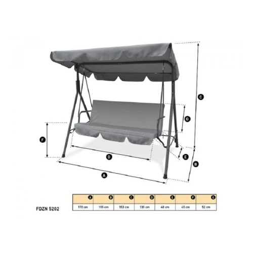 | Specifikacija | Materijal :Konstrukcija: metal sa praškastim premazom, Sedište i presvlake: čvrst poliester Boja: Siva Dimenzije: 170cm x 153cm x 115cm Nosivost: 240kg Dimenzije sedišta: 130cm x 45cm x 48cm, Čvrst poliester - 140g/m2 |