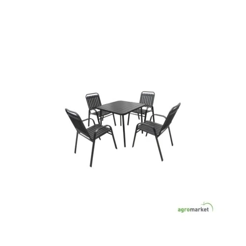 | Karakteristike | Dimenzije stolice: 56×63×89 cm - Dimenzije stola: 80×80×72 cm - Naslon i sedište od PVC-a - Ploča stola sa efektom drveta - Čelični ram sa praškastim premazom - 1 set / 2 kartona Proizvođač: Green bay |