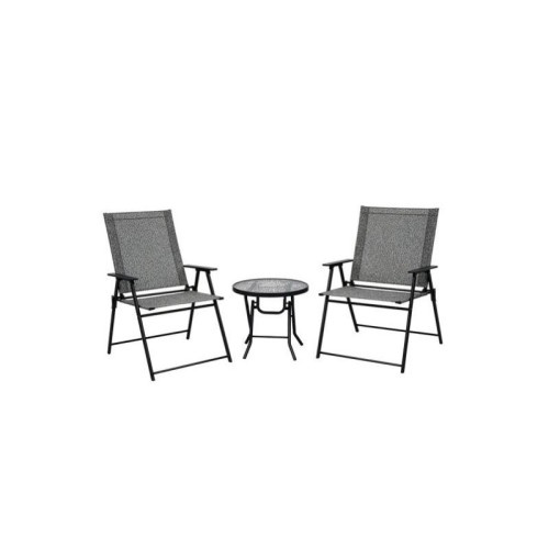 | Karakteristike | - 2 sklopive stolice - jedan sklopivi sto Čelični ramovi su tretirani zaštitnim slojem protiv korozije |