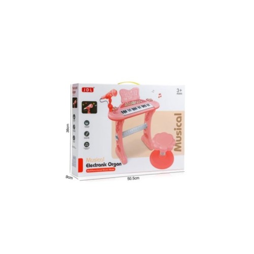 HK mini klavijatura poseduje 37 dirki i više muzičkih funkcija koje omogućavaju deci da uče note, ritmove i melodije na jednostavan i zanimljiv način. Ugrađeni melodijski tonovi, ritmovi i demo pesme čine svaku igru pravim mini koncertom.Uz priloženi mikrofon, mali pevači mogu da pevaju uz muziku, dok sviraju svoje omiljene tonove. Mikrofon se povezuje direktno na klavijaturu, što omogućava lako korišćenje i zabavne muzičke performanse.Set uključuje udobnu stolicu koja je prilagođena visini deteta, kako bi igranje i sviranje bilo prijatno i udobno. Dizajn u obliku cveta i jarke roze boje dodatno podstiču kreativnost i stvaraju vedru atmosferu.Klavijatura je izrađena od kvalitetne, netoksične plastike, bez oštrih ivica. Svi delovi su stabilni i bezbedni za decu, a materijal se lako čisti i održava.