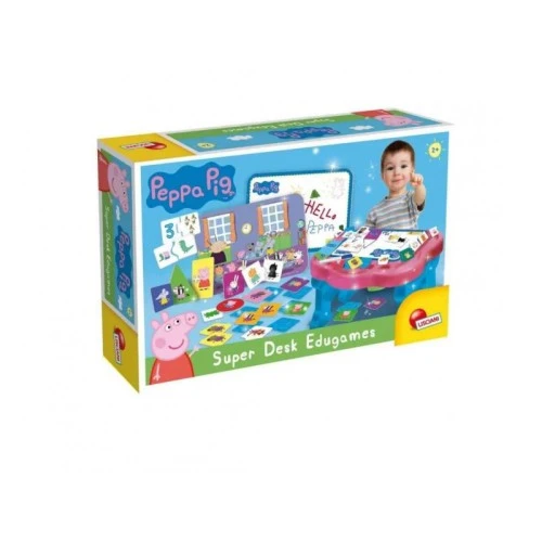 | Karakteristike | Lepo se provedite uz radni sto Pepa Praseta i bogat set igara i edukativnih akvinosti koje razvijaju logiku, pažnju, maštu i pamćenje. Pored toga ima i prostor za skladištenje svih igara. Komplet sadži i igrice sa geometrijskim oblicima, prepoznavanje oblika, i tablu sa markerom za učenje, čitanje i pisanje uz pomoć praktičnih upustava za igru. Materijal : Plastika, karton |