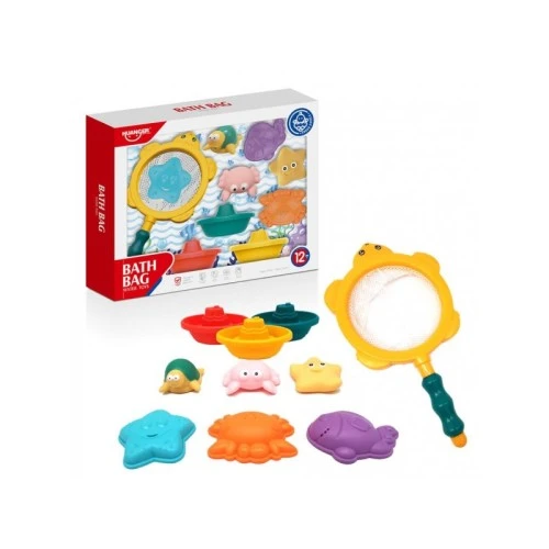 | Karakteristike | Set za kupanje sadrži hvataljku sa mrežom i 9 različitih elemenata: 3 čamca, 2 zvezdice, kornjača, kraba, rak i ribica. Elementi mogu plutati u vodi i hvatati se uz pomoć mreže sa okvirom u obliku kornjače. Deca kroz igru uče o morskom svetu, upoznaju se sa različitim oblicima i vežbaju preciznost prilikom “pecanja”. Učinite kupanje zabavnim i iskoristite vreme za edukaciju mališana – jer učenje može biti zabavno. Dimenzije pakovanja: 42*7*34cm, dimenzije elemenata: hvataljka 15,5*28cm, kornjača 6,5*5cm, roze kraba:7,5*5,5cm, zvezda 7*7cm, čamaca 11*6,5cm, narandžasti rak: 6,5*9,cm riba 7,5*9,5cm. Uzrast: 12+ meseci |