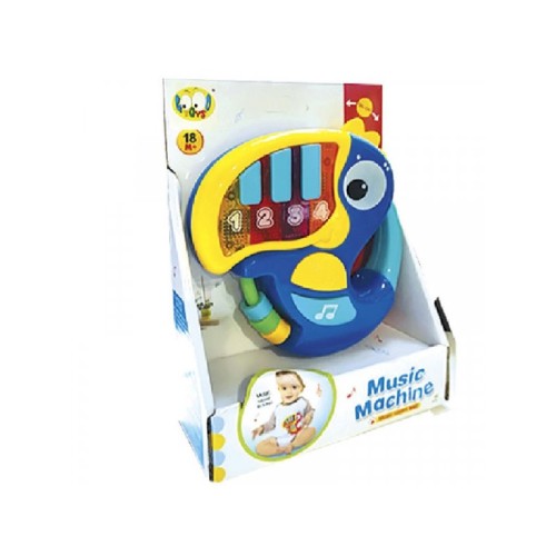 | Karakteristike | Muzička igračka papagaj sa tasterima različitih boja koji aktiviraju zvučne i svetlosne efekte. Sadrži dršku za lakše nošenje, a ima i funkciju roler-kostera sa perlicama. |
