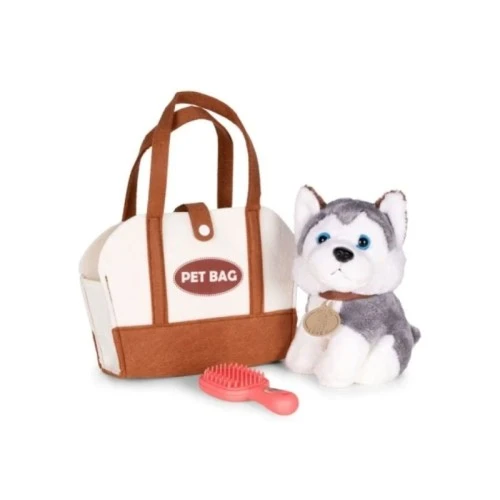 ECO TOYS Plisana igracka za decu, stene Husky, torba + cetka za negu