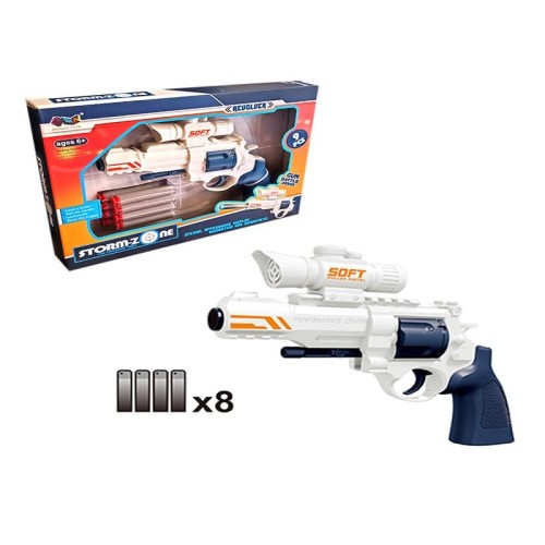 | Karakteristike | Set Pogodi metu koji sadrži belo-plavi revolver i 8 plastičnih metkova koji mogu da se ispaljuju iz pištolja. Revolver sadrži precizan nišan koji će vam pomoći da pogodite metu. Dimenzije proizvoda: 24*4.5*17cm, dimenzije pakovanja: 31*4.5*23cm, uzrast: 6+ |