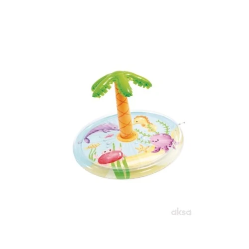 Jednostavno priključite baštensko crevo na bazen i palmina prskalica će početi da raspršuje blage mlazove vode, stvarajući dodatno uzbuđenje i osveženje. Unutrašnji deo bazena krase razigrani morski motivi sa slatkim morskim stvorenjima koji podstiču maštovitu igru. Ovaj bazen je idealan za prve vodene avanture i igru u toplim danima.