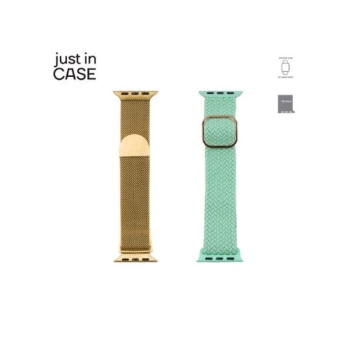 JUST IN CASE 2u1 Narukvica za pametni sat 38-41mm zlatna MILANESE + tirkiz TEKSTIL