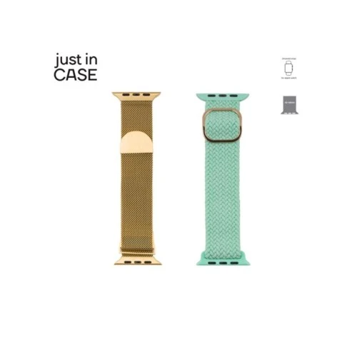 JUST IN CASE 2u1 Narukvica za pametni sat 42-45mm zlatna MILANESE + tirkiz TEKSTIL
