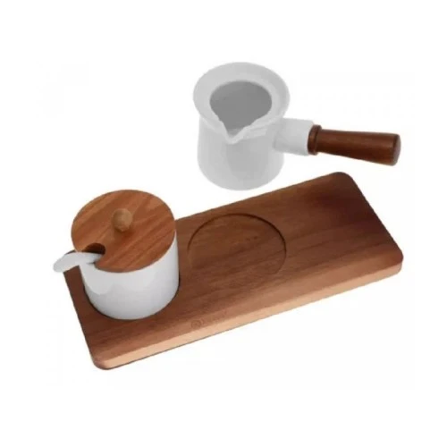 | Karakteristike | Set sadrži: - posuda za šećer sa poklopcem od bagrema - porcelanska kašičica - porcelanski bokal za mleko 150 ml - postolje od bagrema: 23cm k 10cm k 1.2cm. Elementi od prirodnog bagremovog drveta i pojedinačni komadi mogu se razlikovati po nijansi i strukturi zrna. Ne preporučuje se pranje drvenih elemenata u mašinama za pranje sudova. |