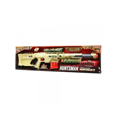 | Karakteristike | Lanard Puška Huntsman 50 sa dometom do 15.2m i odvojivim šaržerom sa 24 penastih metaka. Može se rastaviti na 3 dela. Pojedinačna paljba. Dimenzije: 91x7x21cm. |