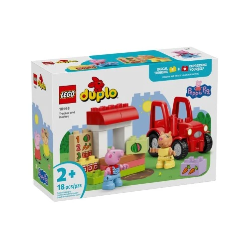 | Karakteristike | Ovaj edukativni set (10468) od 18 delova idealan je za decu uzrasta od 2 i više godina. Kroz posmatranje i imitaciju scena sa pijace, deca razvijaju kognitivne veštine i pamćenje. Kocke su ukrašene motivima hrane poput džema, lubenice i šargarepe, što omogućava prepoznavanje pojmova i osnovno uparivanje brojeva. PIJACA NA FARMI – Deca oživljavaju scene iz omiljene serije dok vode sopstvenu malu prodavnicu hrane. LIKOVI I VOZILO – Set sadrži crveni traktor koji se može voziti, kao i figure Pedra Ponija i Pepe Prase. KREATIVNO UČENJE – Mališani vežbaju motoriku slažući traktor i štand, dok kocke sa motivima hrane podstiču logičko razmišljanje. BROJANJE I UPARIVANJE – Koristi meni na štandu da pomogneš detetu da pronađe odgovarajuću kocku i nauči osnove prepoznavanja brojeva. DIMENZIJE – Traktor je dugačak oko 12 cm, savršen za male dečije ruke. |