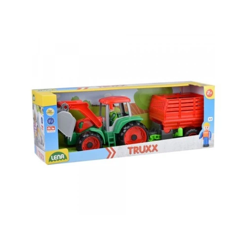 | Karakteristike | Lena Truxx traktor-utovarivač sa prikolicom sa skupljanje sena. Set sadrži figuru farmera. Ruka utovarivača i kašika mogu se skinuti. Pogodno za spoljašnju i unutrašnju upotrebu. Dimenzije proizvoda: 53 x 16 x 16 cm |