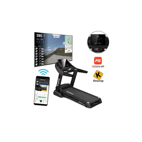 | Karakteristike | Motor: 4 HP Maksimalna brzina: 0.8 - 20 km/h Kompjuter sa LED display 12 unapred podešenih programa za trening, 3 korisnikova programa i jedan ručni program Ulazi za MP3, USB, veoma kvalitetni zvučnici Automatsko podešavanje nagiba 0 - 15% Dugmad za brzu promenu brzine i nagiba Efektivna površina za trčanje: 130 x 51cm Gumene podloge za mekane pokrete i redukovanje opterecenja zglobova Sistem za gladak i tih rad Dimenzije: 180 x 86 x 145 cm Preklapanje Težina: 100 kg (bruto) |