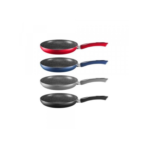 | Karakteristike | Prečnik 22 cm. Grejna površina: 14,7 cm. Ukupna dužina tiganja sa ručkom: 43 cm. Visina: 4 cm. Boje: crvena, plava, siva. Materijal: aluminijum. Podloga se ne lepi. Drška je otporna na toplotu. |