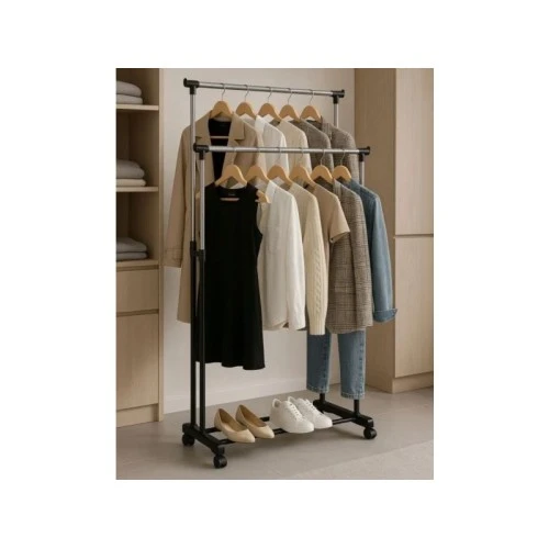 ModernHome Univerzalni dvostruki stalak za odecu sa podesivom visinom, tockicima i 2 sine