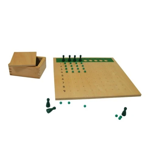 Set sadrži drvenu tablu, sa obeleženim brojevima od 1 do 9,